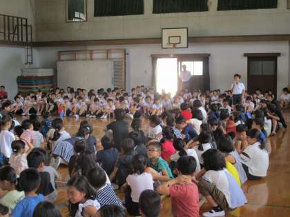 今日は嵐山タイムで5年生が発表しました。1組は総合の学習で「和食」について調べてわかったことや考えたこと,2組は国語科の学習で「よりよい学校にするための提案」としてあいさつを増やすためにできることを発表しました。発表前は緊張していましたが,堂々と自分の意見を話すことができました。聞いていた他の学年の友達からもたくさん感想を伝えてもらい,うれしそうでした。