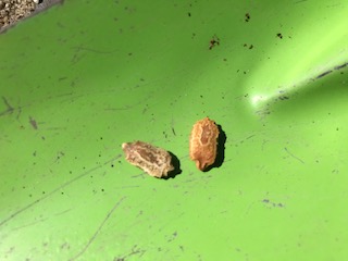 なんの種でしょうか。とても固くて,おうど色です。形は亀のこうらのようです。大きさは1センチ程度です。