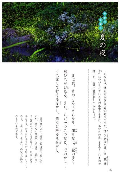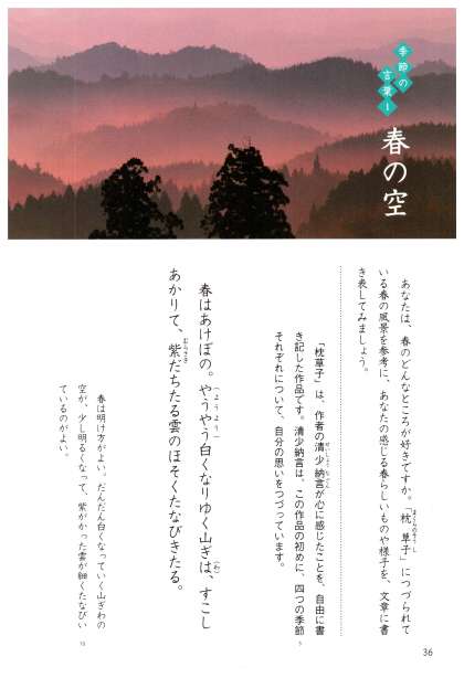 「枕草子」は,作者の清少納言が心に感じたことを自由に書き記した作品です。清少納言は,この作品の初めに,四つの季節それぞれについて,自分の思いをつづっています。