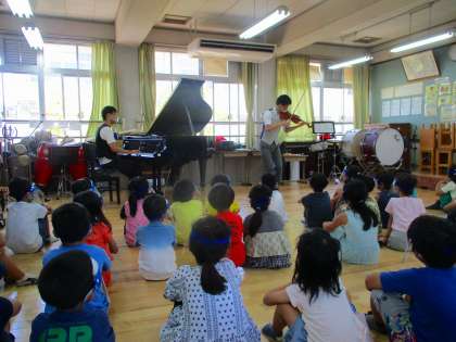 体を動かしながら聞いたり,バイオリンを弾かせてもらったり,とても楽しい時間を過ごしました。