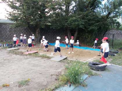 体育科では「はばとび」の学習をしています。夏休み前から学習していますが,回を重ねるごとに体の使い方が上手になって,遠くまで跳べるようになってきました。助走・ふみきり・着地,それぞれ気を付けるポイントを意識しながら取り組んでいます。