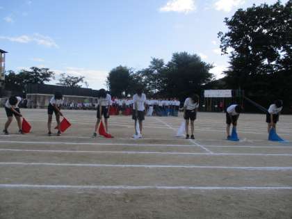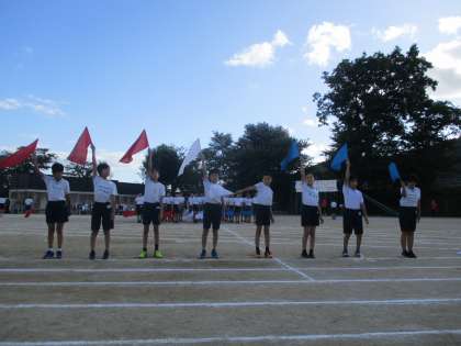 フラッグを使った集団行動のあとは,グループごとにポーズを取りました。みんなで心をひとつにして取り組んだ団体演技「STORY」。「最後までやり切った。」という達成感にあふれた子どもたちの表情が,とても素敵でした。