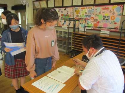 グループごとに,校長先生や教頭先生,濱先生に「自分の考えがしっかり書けていて,がんばっていることが伝わってきます。」「少し色をつけて大事なことをまとめるといいね。」など,褒めてもらったり,励ましの声かけをしてもらったりして,子どもたちは,「がんばろう!」という気持ちを高め,さらにやる気になったようでした。