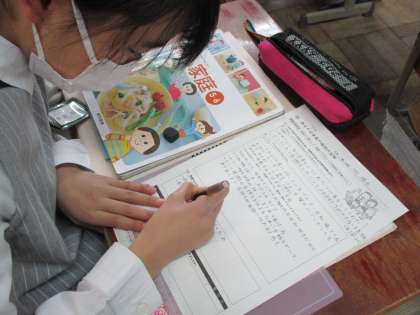 子どもたちは,「当たり前のように毎日料理を作ってもらっているから,今度は自分でごはんを作ろう。」「特に今は寒い時期だから,洗濯を干したり,たたんだりして少しでもゆっくりしてもらおう。」「裁縫が得意だから,手作りマスクを作ってプレゼントしたいな。」など,自分らしく感謝の気持ちを伝える方法を考えていました。実践したときの家族の反応が楽しみな様子でした。