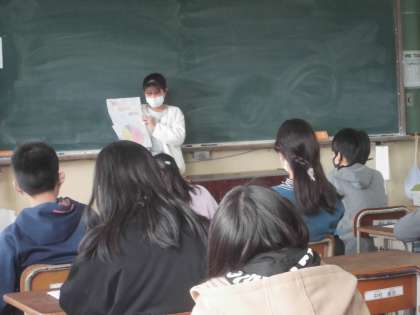 人前に立って話すことが苦手な人もいますが,自分の思いや意見を話して伝えることは大切な力です。こうした学習を通して,話す力や聞く力をしっかりと身に付けてほしいと思います。