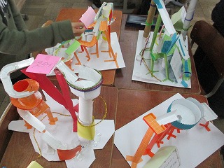 図画工作の学習で,立体作品のコロコロガーレを作成しました。