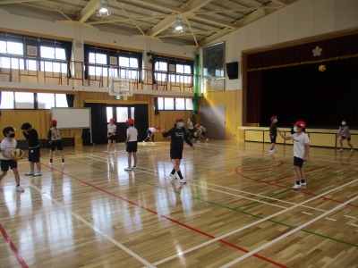 新しい体育館で,ソフトバレーボールの学習をしました。ソフトと名前がついているように,ボールが通常のバレーボールよりも柔らかく,球技が苦手な人でも楽しく活動ができるスポーツです。