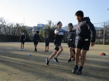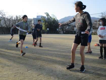 今日の嵐ingでは,グループに分かれて駅伝をしました。襷のかけ方や渡し方を確認したあと,一人3周走ってチームで競いました。卒業まであとわずかですが,毎週走ることを楽しんでいる姿が見られてうれしく思っています。