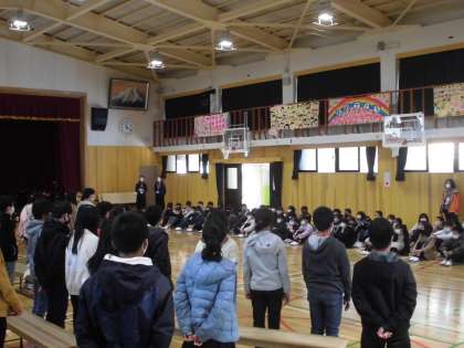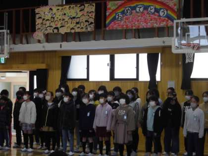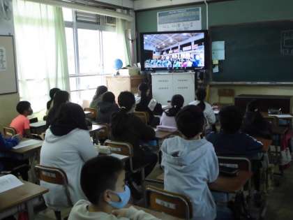 例年と違って,全校が集まっての会ではありませんでしたが,それぞれの学年が6年生の前で感謝の気持ちを伝えました。その様子は,ライブ中継で見ることができ,全校で6年生をお祝いする気持ちを高めることができました。