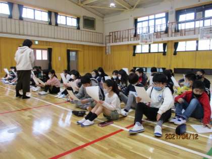 明日は町別児童集会があるということで,登校リーダーさんが打ち合わせのため,体育館に集まりました。中間休みだったので,遊ぶことができませんでしたが,担当の先生の話をきちんと聞いて明日に生かそうとしているようでした。入学したばかりの1年生を優しいリーダーとして教室に連れて行って教えてあげてくださいね。集団下校もよろしくお願いします。担当の先生の話を真剣に聞いていた6年生の姿がとてもかっこよかったです。