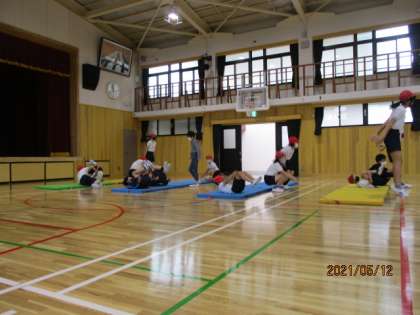 体育科でマット運動を学習しています。回数を重ねるたびに,自分のすることがはっきりしてきました。きれいに,気持ちよく回れるようになりたいと,互いに励ましたり,アドバイスをしたりしながらがんばっています。