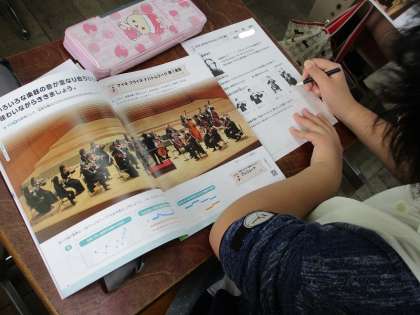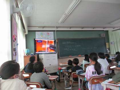 音楽で「弦楽合奏のひびきをきこう」というめあてで学習をしました。映像で,バイオリンやビオラ,チェロ,コントラバスなどの音色を聞いて,弦が長くなるほど音が低いということに気付きました。