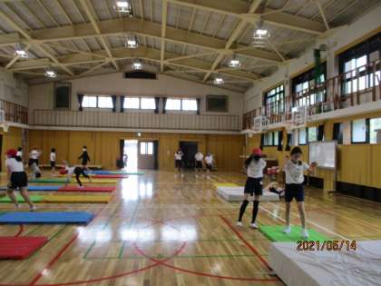 ちなみにこの時間,ツバメが体育館に飛んで来ました。迷い込んだようですが,子どもたちは「あ〜,ツバメ!かわいい!」と言っていました。尚,無事にツバメは体育館から飛び立ちました。