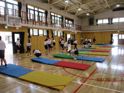 今日は,マット運動の最後の日です。子どもたちは,できる技を連続で取り組んだり,少しがんばればできる技を何度も練習したりしました。そこでは,友達のアドバイスがあったり,励ましがあったりしてできなかったことができるようになった喜びがあったようです。また,一つの技にまじめに取り組む友達の姿を見て,素敵だなと感じた子どももいました。最後にみんなで丁寧に後片付けをしました。