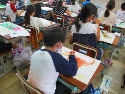 図画工作の学習で,「わすれられない気持ち」を絵に表しています。どんな出来事があったのか,そのときどんな気持ちだったのか考えて描いています。どんな絵が出来上がるか楽しみです。