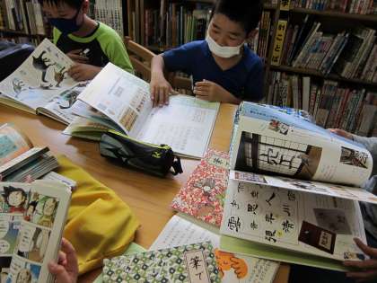 学校図書館で読書をしていた時のことでした。1人の児童が司書の先生に「先生,習字の本はありますか?」と尋ねていました。3年生からは,毛筆の学習が始まります。興味を持った児童が,本を読みたくなったようです。司書の先生は,「もちろんありますよ。」と何冊か習字の字体や毛筆の書籍を用意してくださいました。すると,周りにいた児童も「習字の本があるの?読みたい!」と言ってみんなで本を囲んで読んでいました。学習に関連した書籍を読むことで,一層楽しみながら毛筆の学習をすることができるといいですね。