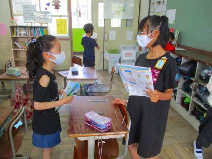 外国語の学習がありました。好きな遊びを聞き合いました。インタビュー結果をもとに,クラスで人気な遊びは何か予想しました。ALTの先生にもインタビューしました。
