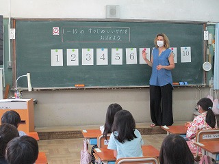 先週から,英語の学習が始まっています。ミーガン先生と「Hello,how are you?」と,お話をしました。そして,1から10までの数の言い方を学習しました。歌やゲームを通して,楽しく学習をしました。