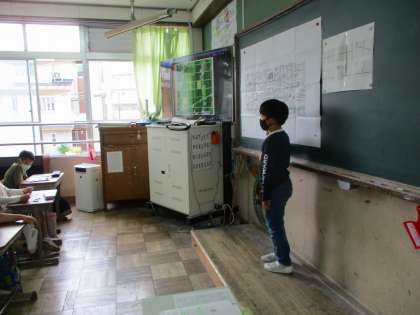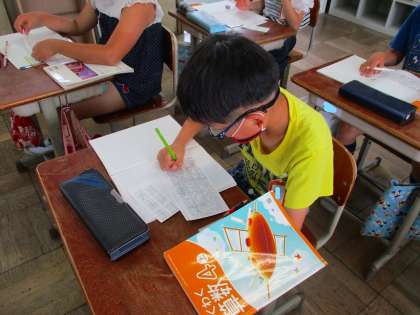 算数では,今日から新しい単元の学習に入りました。2本の直線が直角に交わっていることをを見つけたり,その直線を垂直ということを新たに学んだりしました。