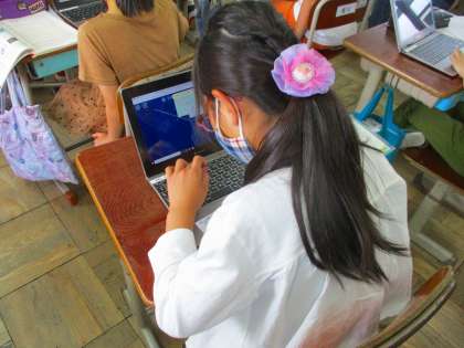 総合的な学習の時間に,自分の家は水害に対して準備ができているのかアンケートをとりました。タブレット端末でYチャートを作り,アンケート結果を整理しました。次の時間には,友達の家はどんな結果だったのか,交流します。