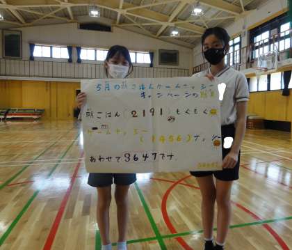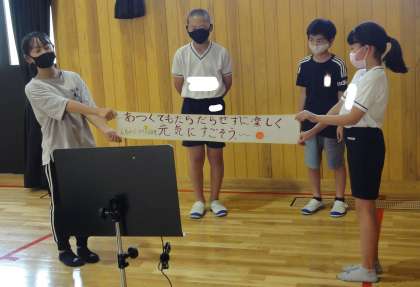 今日の昼休みに児童集会が行われました。朝ごはん&ゲームナッシーキャンペーンの結果や読書週間のお知らせ,スマイル目標を発表してくれました。zoomでの集会も慣れてきましたね。暑さに負けず,朝ごはんをしっかり食べてばてないように,規則正しく生活していきましょう。