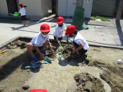 暑い日でしたが子どもたちはとても楽しかったようで,「もっとやりたい!」「中間休みには,泥だんごを作ろう。」と話していました。