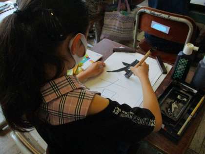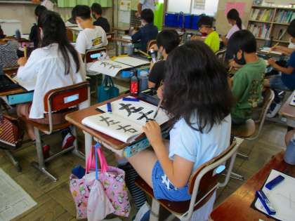 書写がありました。今日は筆順と字形に気をつけて「左右」と書きました。左と右の書き順の違いを確かめながら書いていきました。
