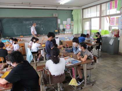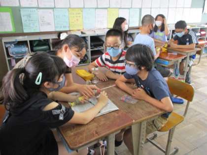 この日は教室で,気体検知管を使って,酸素と二酸化炭素の濃度を調べました。なかなかデリケートな機器で,少し緊張していたようですが,仲間と楽しく学習できました。ものを燃やす前と燃やした後でも,それらの値が違っていて,子どもたちから「おーっ」という声が聞こえました。