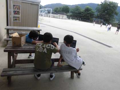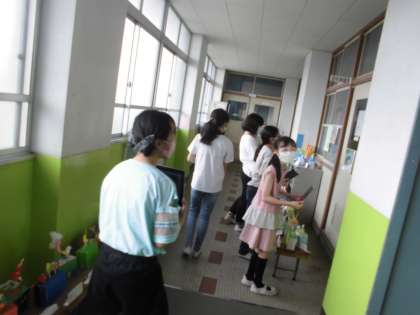 図工の学習では,今日からわたしの大切な風景という学習を始めました。約6年間通ってきた嵐山小学校の中の,お気に入りの場所はどこでしょう?運動場,バスケットコート,中庭,正門,下駄箱などなど・・・それぞれのお気に入りの場所の写真を撮影しに行きました。構図を意識して,取る角度を考えました。(運動場,図書室,廊下チームの様子です)