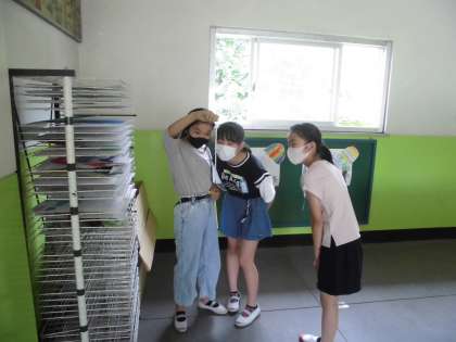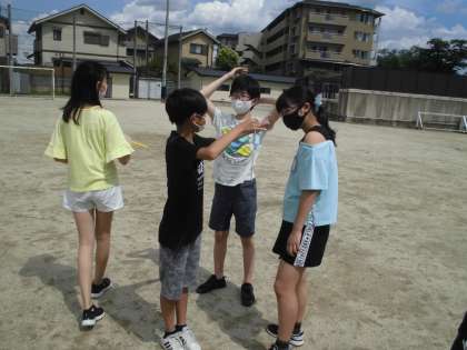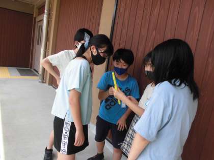 家庭科の学習では,夏を涼しく過ごすための工夫について考えています。昨日は,運動場の日なたや日陰,校舎の中など,それぞれの場所で気温を測ってみました。日陰の方がやはり温度は低く,校舎に入ると日陰よりも2,3度低くかったです。校舎に入ると「涼しい。」という声も聞こえてきました。直射日光が当たらないからかなという意見も出てきました。