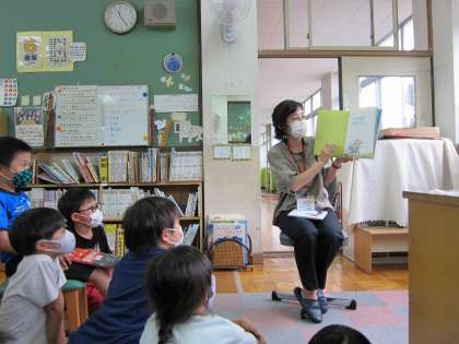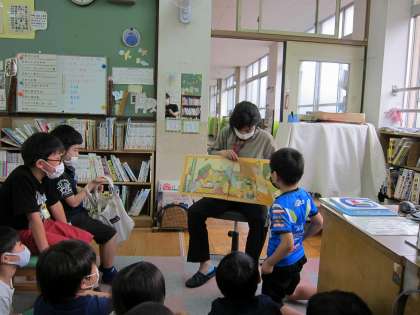 今週はあじさい読書週間でした。そこで、今日は図書館で司書の先生におすすめの本の読み聞かせをしてもらいました。2冊の本を読んでもらった後に、アンコールでもう1冊。今度は、クラスの友達が読み聞かせをしてくれました。それぞれのページに隠された秘密や楽しいエピソードを盛り込んだ友達からの読み聞かせ。みんなでお話の世界を楽しむことができました。