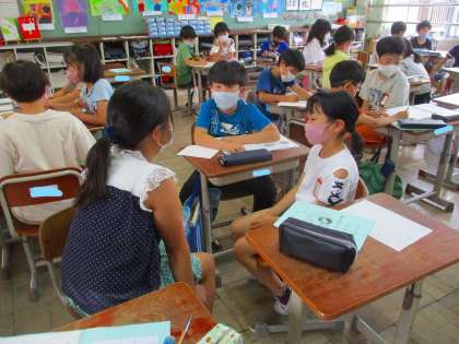総合的な学習の時間には,「防災プロジェクト」のための活動をチームごとに分かれてスタートさせました。どんなことを調べたいか,どのように調べるのかなど計画を立てました。