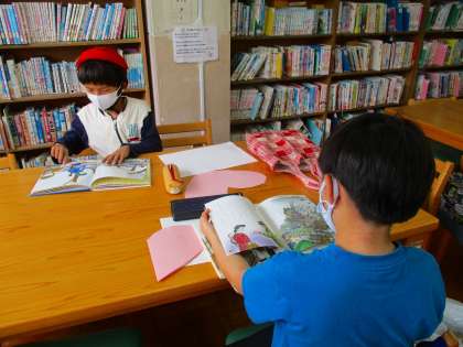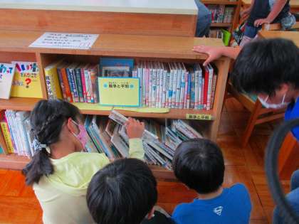 国語科「一つの花」を学習しています。一つの花は,作者が平和を願って書いたお話なのだと話し合いました。そこで,そのほかの「平和を願って書かれた本」を読み,感想を交流することにしました。