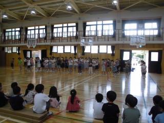 1年生を迎える会で,2年生はトップバッターを務めました。1年生を目の前にして,少し緊張した様子の子ども達・・・。