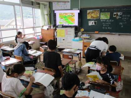 この日は「縄文時代と弥生時代」を比較しました。どちらの時代もいいところと残念なところがあります。子どもたちは,自分ならどちらの時代に住みたいか,と意見をたくさん伝えていました。たくさんの意見が出て,たくさんの意見を聞いて,良い学習の時間だったと思います。