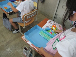 道徳科の学習では,「あとかたづけ」の学習をしました。あとかたづけをすることで,気持ちよくなる,すっきりした気持ちになることに気付きました。最後には,自分のお道具箱の中は後片付けができているかを,確認しました。「ちょっときたないからきれいにしたい。」という声が上がったので,自分のお道具箱の中を,きれいにしました。みんなのお道具箱の中がきれいになって,すっきりしました。