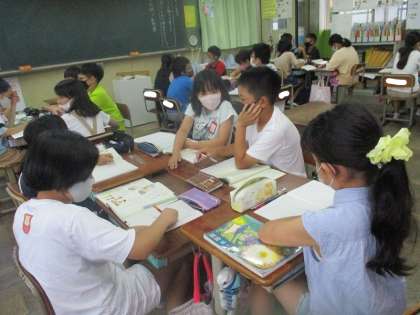 国語科では,立場や意図を明確にして,説得力のある話をする学習をしました。「いぬかねこどちらを選びますか」という内容で話し合いをしました。ほかにも,それぞれのグループで「水族館か動物園」「大型犬や小型犬」など,さまざまな内容を考えて,話し合いをしていました。説得力があるには,どのように話したらよいのか考えることができました。
