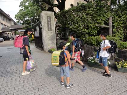おはようございます。昨晩は少し過ごしやすい夜でした。子どもたちは朝から元気に登校しています。校門に立っていると,集団登校で前を歩いている高学年の女の子が,低学年の児童に「おはようございます!ってしっかりあいさつしようね」と声をかけていました。子どもたちの姿を見てとても嬉しい一日のスタートになりました。今週もよろしくお願いします。