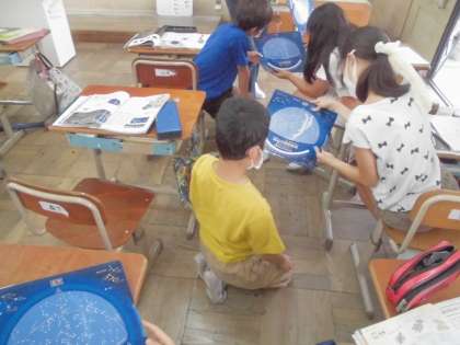 今日の理科の学習では,星座速見表と方位磁針を使い,星の位置の学習をしました。方位磁針で方角を確かめ,どの方位にどんな星が見えるのかということを確認しました。