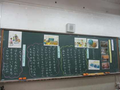 今週の道徳の時間は,「そろっているけど」という教材から「みんなのものの使い方」について考えました。学校にはボールや本,ほうきやぞうきん,トイレのスリッパなどみんなで使うものがたくさんあります。子どもたちは「誰かに任せるのではなくて,みんなで整理整頓をしたらいい。」「自分で使ったものは自分で片付ける。」「使ったらすぐに片付けるといい。」など,みんなのものをどのように使えばよいか考えることができました。