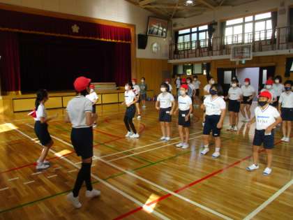 この日,全校ダンス係の人が前で踊る練習をしていたら,数人が一緒に踊りだしました。みんな体を動かすのが好きなんだね。みんなで体を動かしたら気持ちいいですね。その後,体育館でみんなで踊りました。