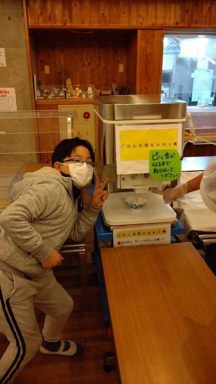 ごはんをおかわりしています。自動ででてくるのでびっくりしました。
