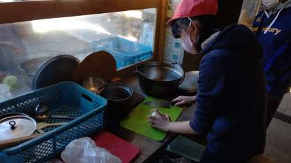 野外炊飯が始まりました。