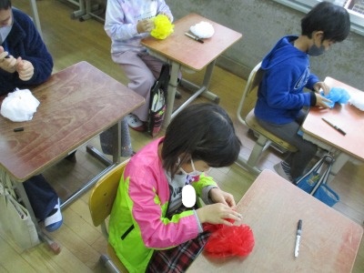 今までは,花笠音頭の練習は,無地の花笠を使って行っていました。今日は,お花紙を使って花笠に飾り付けをしました。子ども達は,丁寧にお花を作っていました。完成した花笠を見て,「早くこの笠で踊りたい!!」とやる気満々でした。明日の練習が楽しみです。