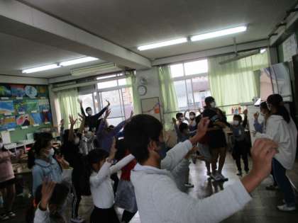 昼休みにスマイルグループ(異学年少人数グループ)で集まって,運動会の全校ダンスを踊りました。6年生がみんなにダンスを伝えました。みんなで踊って,みんな笑顔になりました。楽しかったね。