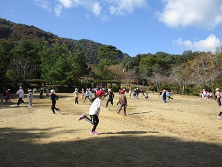 今日は,嵐山の亀山公園まで,遠足に行きました。朝から良いお天気でした。2年生と一緒に中庭に集合して,先生からのお話を聞き,みんな元気に出発しました。「楽しみだな。」「今朝,早起きしてしたよ。」と,みんなウキウキした気持ちでした。亀山公園に着き,広場での遊びを楽しみました。