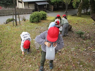 広場で遊んだ後は,展望台へ行き,クラス写真を撮りました。とても良い眺めでした。その後,お弁当を食べました。お弁当を一番に楽しみにしている子もいて,「いただきます。」のあいさつの後,おいしくいただきました。そして,木の実集めをしました。どんぐりや松ぼっくりなど,秋の木の実を拾いました。そして,安全に気を付けて帰りました。保護者の皆様には,お弁当の用意など,ありがとうございました。今日集めた木の実は持ち帰りましたが,また,生活科のリース作りで使うので,お家に保管しておいてください。