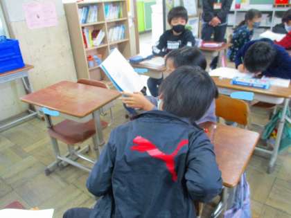 算数でがい数を学んでいます。今日は,がい数でかけ算をするには,どのようにするのか説明しました。友達に分かるように説明できることをめざしました。