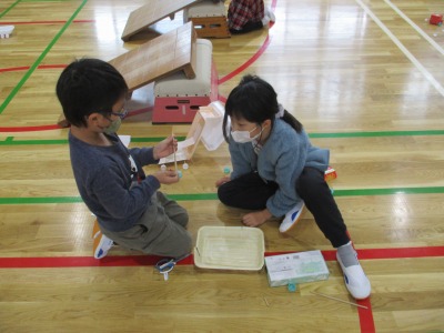 生活科の学習で,「あそんで ためして くふうして」の学習をしました。初めて学年で自分たちの作っているおもちゃについて交流しました。子ども達は,自分のうまくいかないところを友達と話し合うことで,もっとよりよいものにすることが出来ました。次は,そのおもちゃを使った,ゲーム作りに挑戦です。