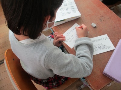 書写の学習で,年賀状を書きました。新年を祝う言葉や絵を添えて,送る相手の方を思い浮かべながら丁寧に書くことが出来ました。文字や絵から,子ども達の温かい気持ちが伝わってきました。